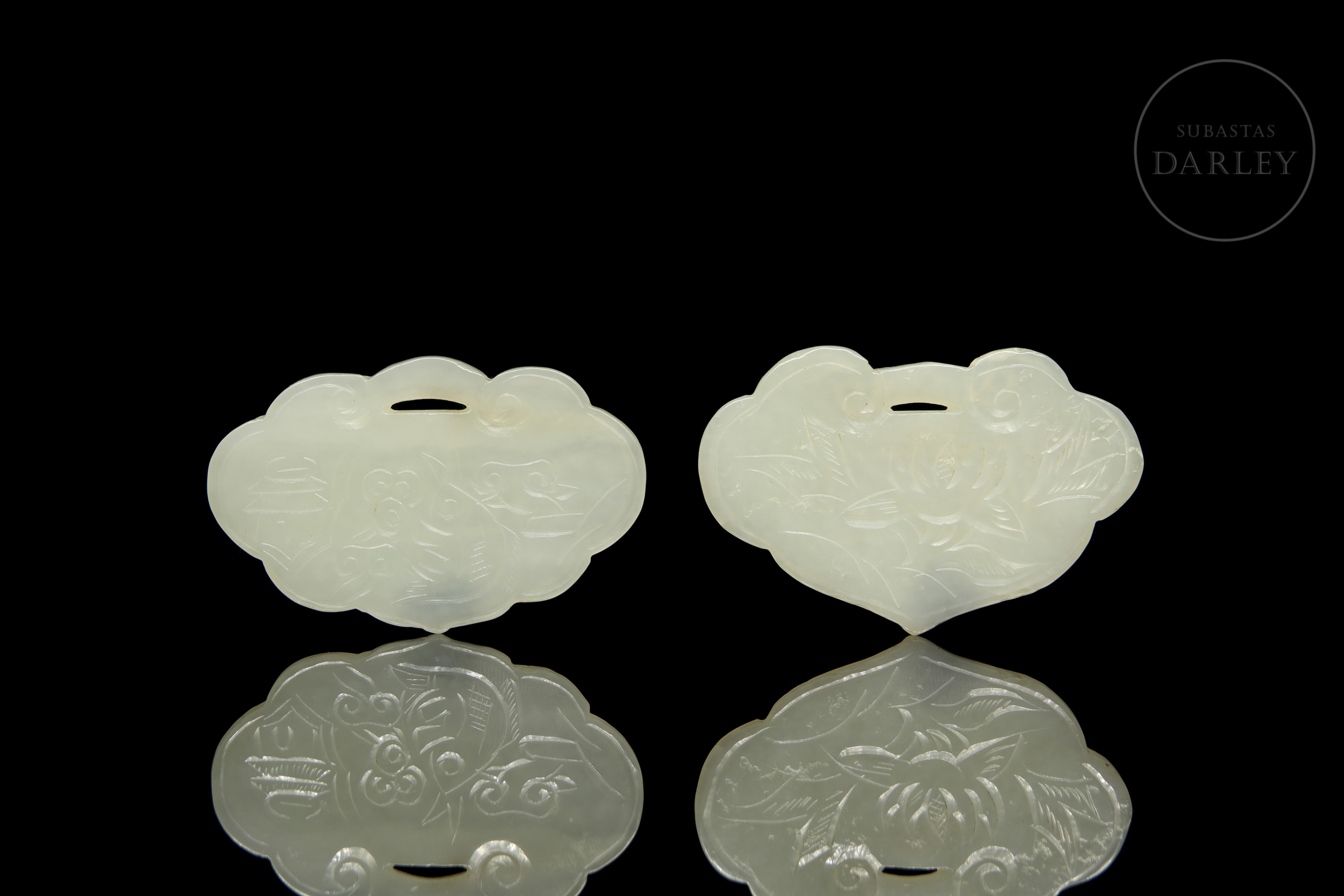 Pair of jade pendants, ‘Lotus and Bird,’ Qing dynasty