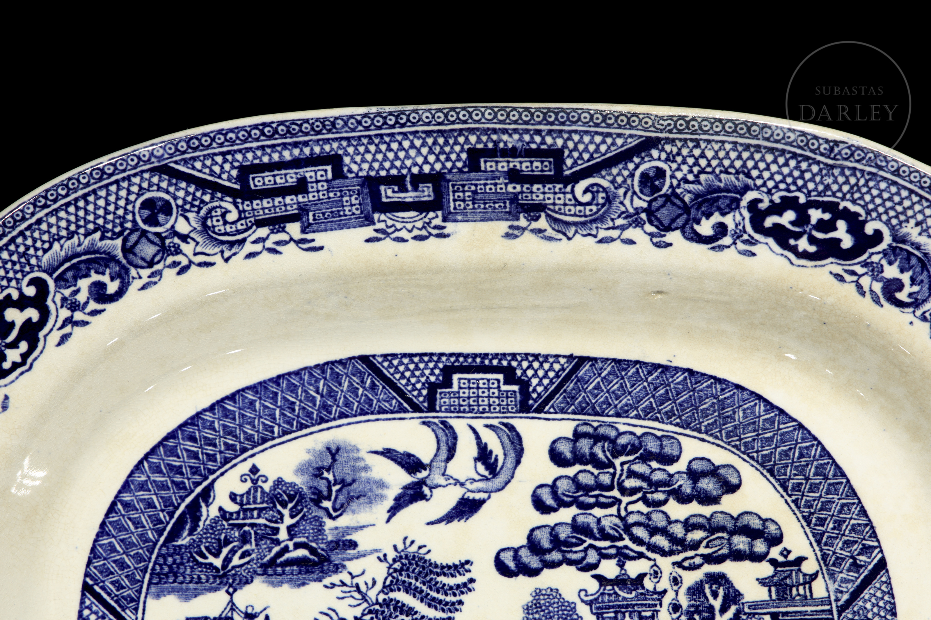 这款托盘是一件英国陶器,饰有标志性的蓝白柳树纹样。这种设计的陶器在19世纪和20世纪均有生产。