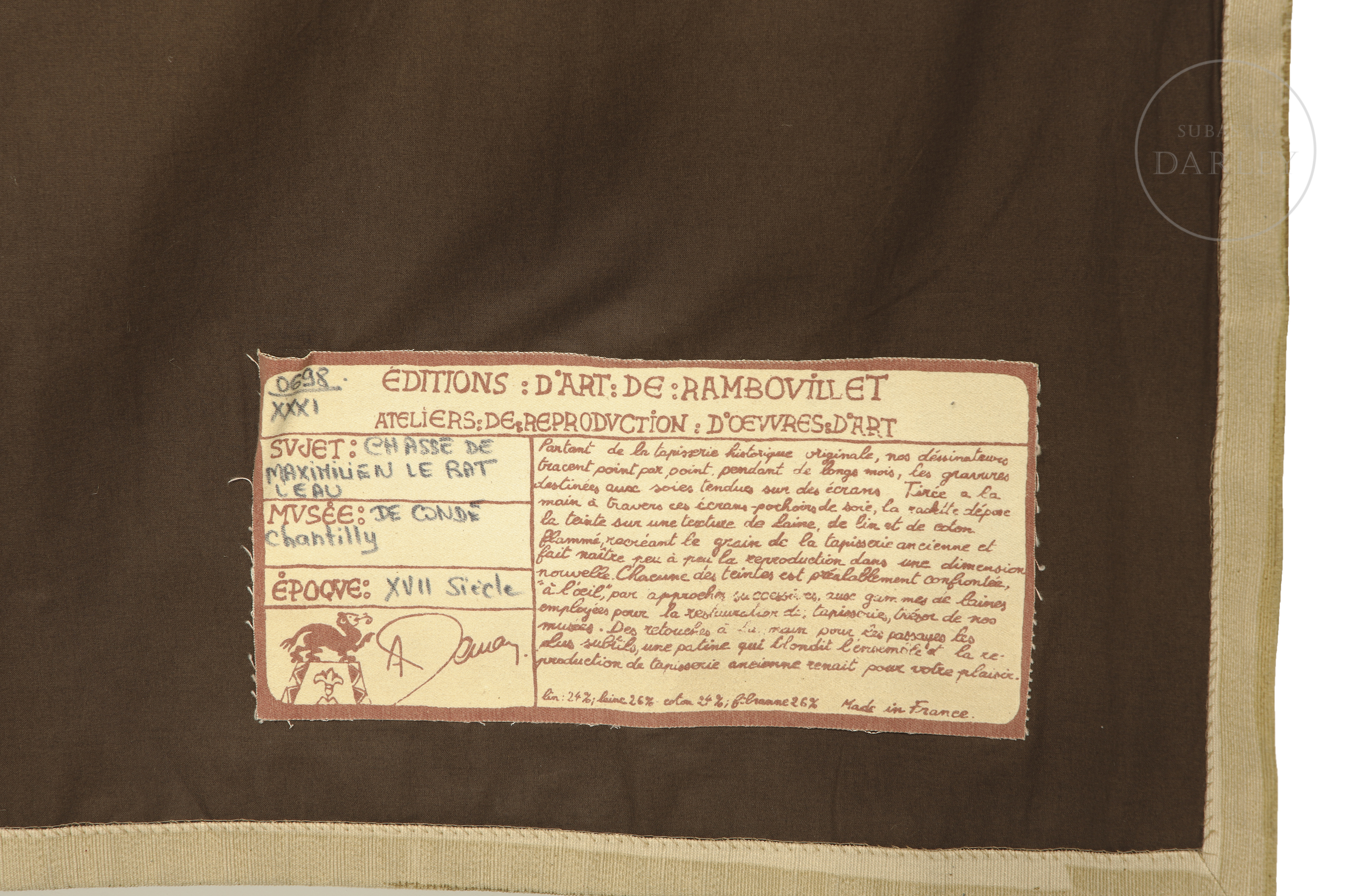 Tapiz Editions d'Art de Rambouillet "Chasses de Maximilien Le Rat Leau"