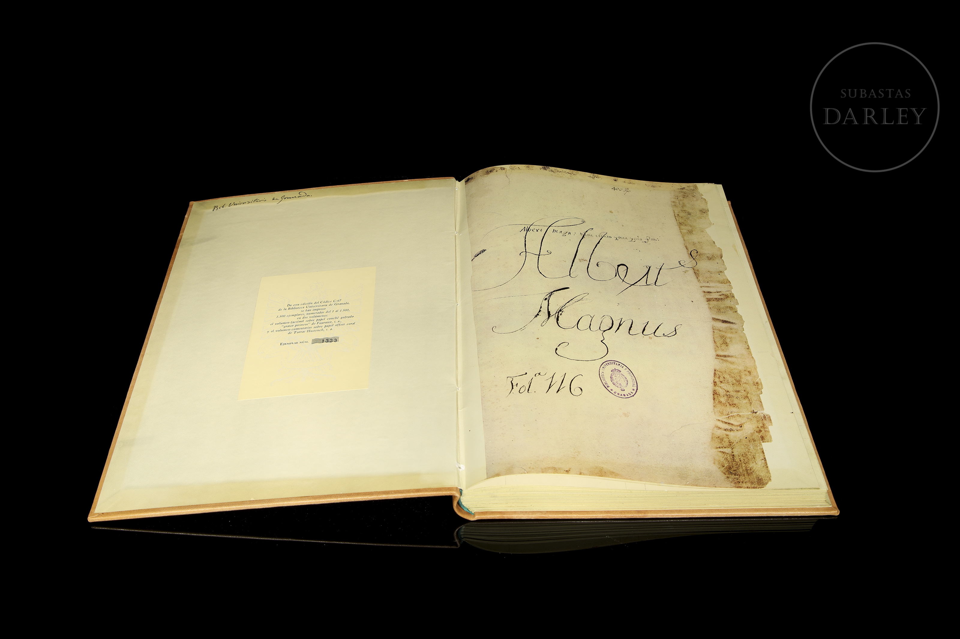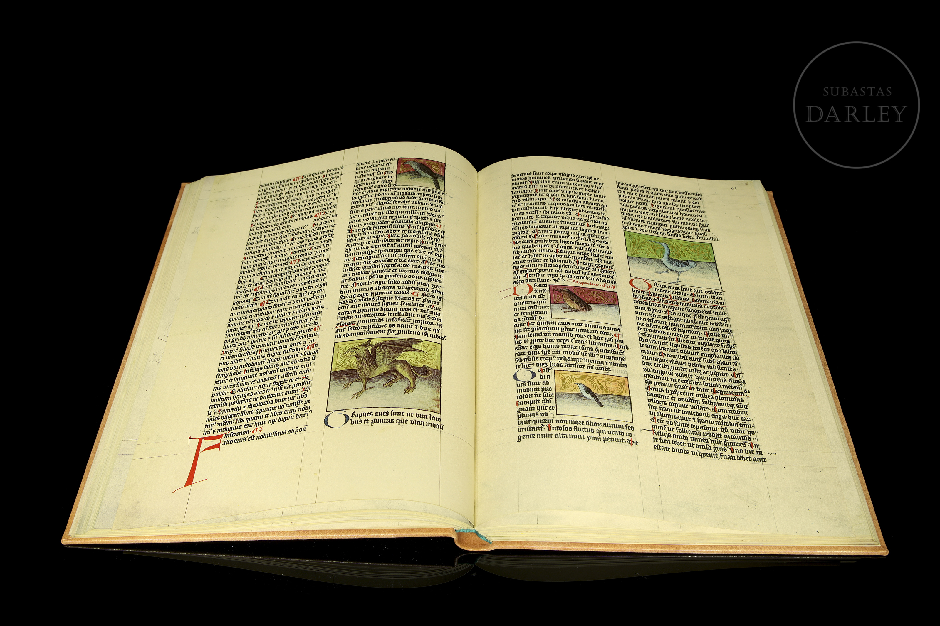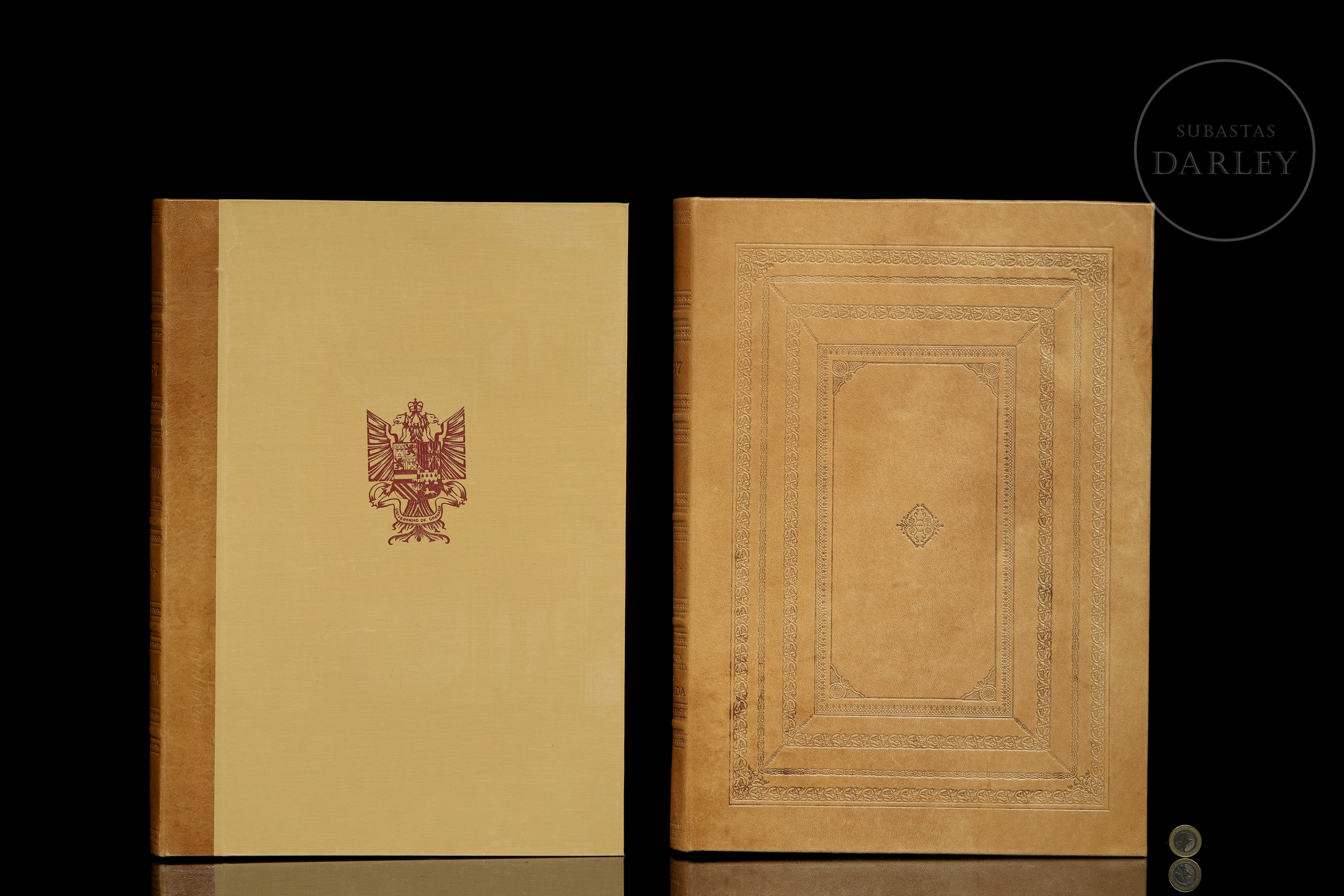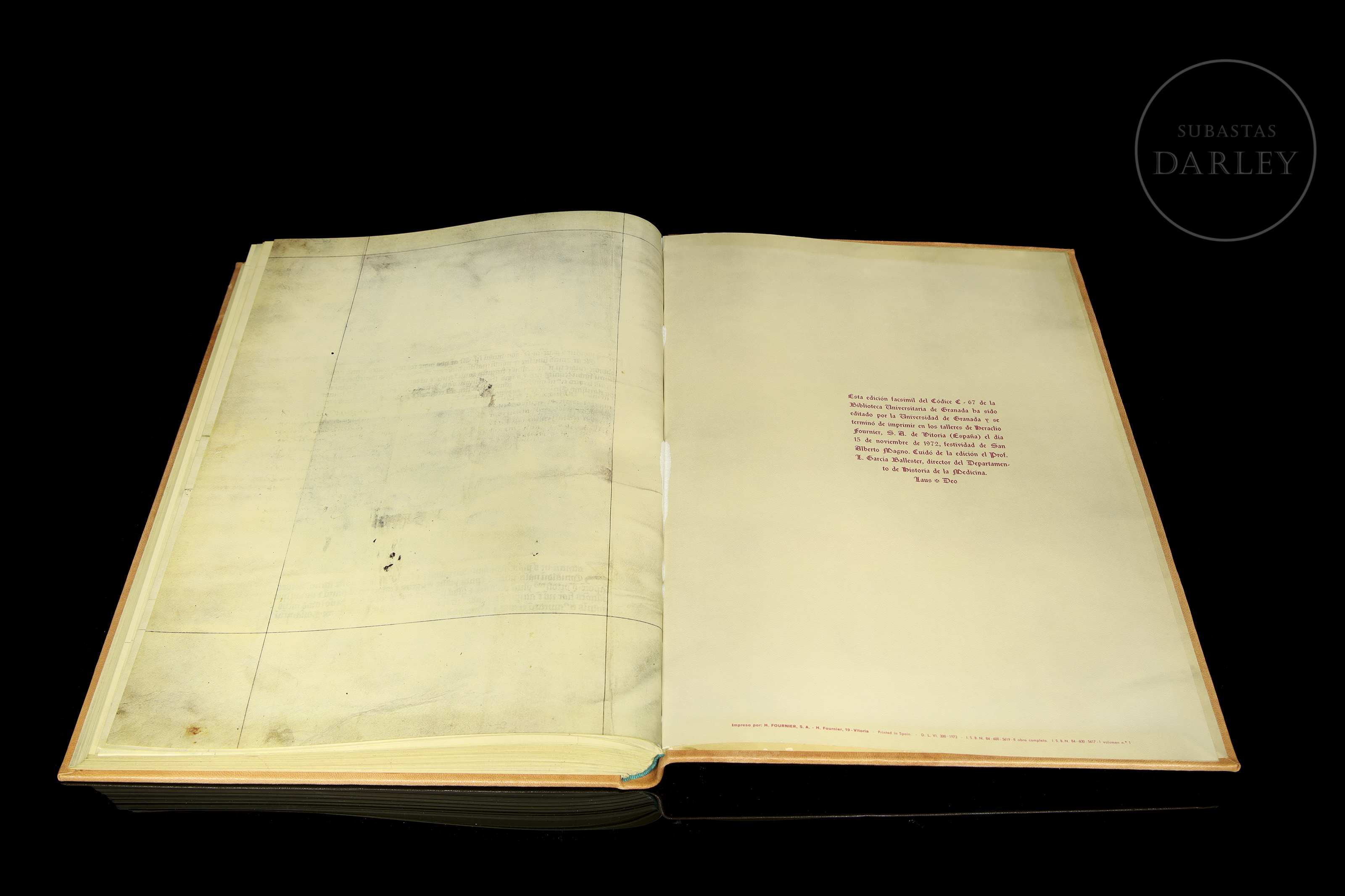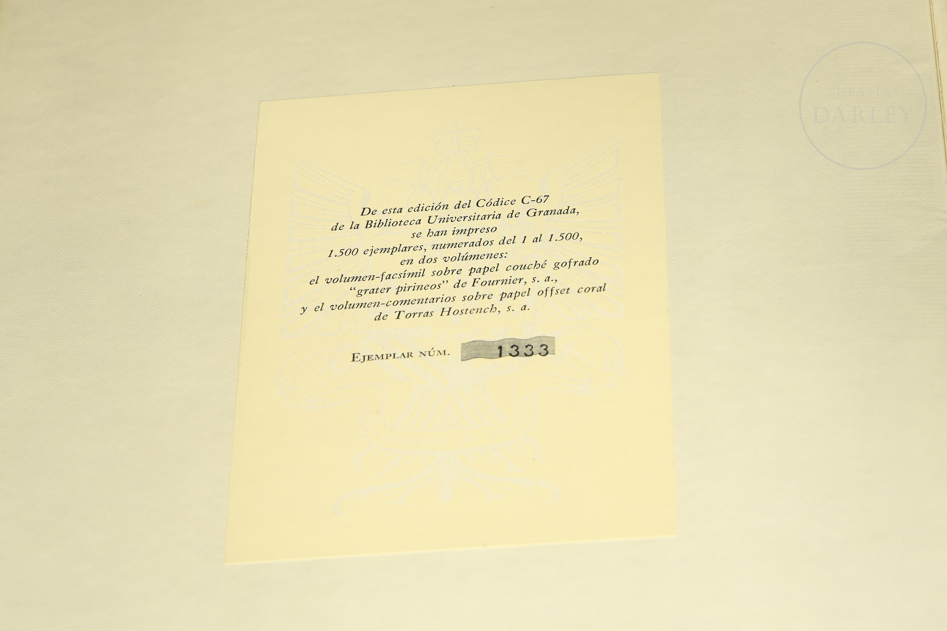 Tomas de Cantimpré. Facsimile reproduction of Codex C.67 of the University Library of Granada. Full leather hardcover engraved and dutch. Accompanied by a book of preliminary study, transcription and Spanish and English translations, edited by Luis García Ballester. Numbered 1333/1500. Published by the University of Granada &, Heraclio Fournier, 1972.