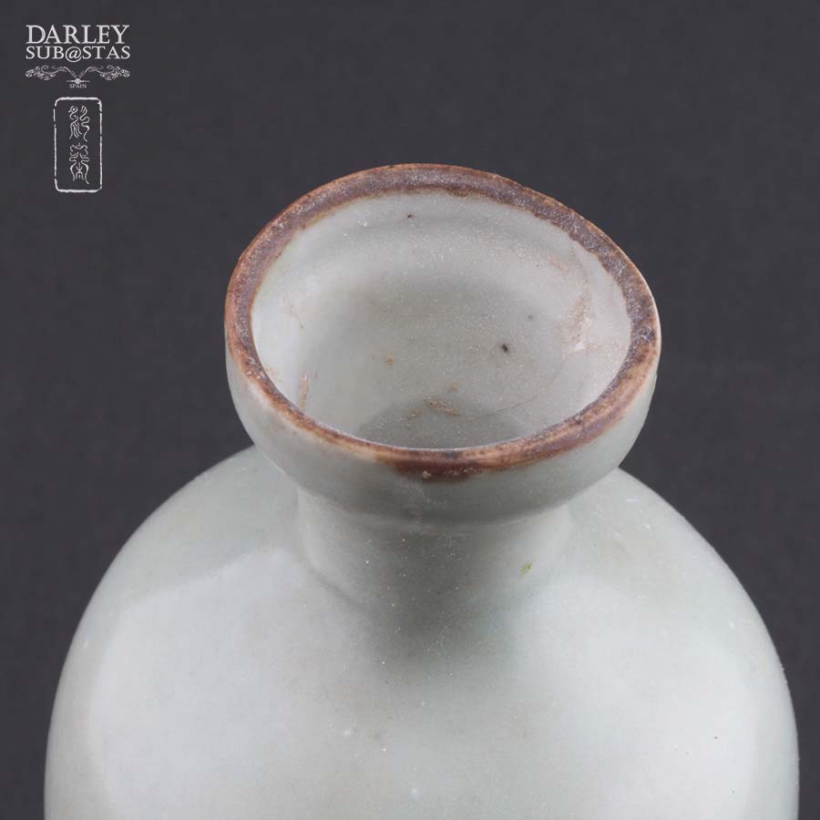 Vase shaped bottle or Meiping very wide mouth of the Song Dynasty 960-1279, XIII century, the light green color is typical of the era. Very good state of preservation.